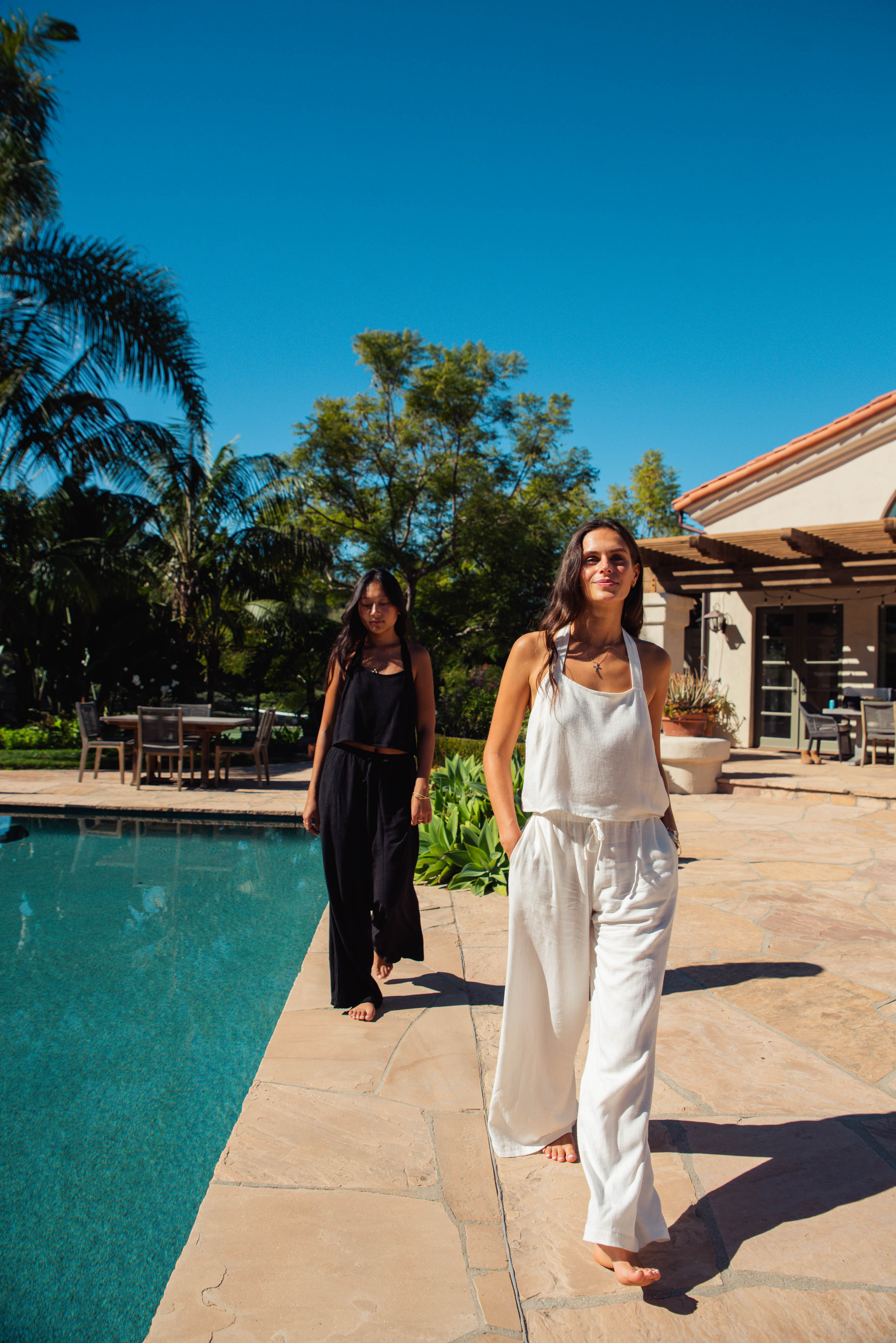 The Marlow Pants are effortless, subtly sexy and coastline cool. These pants with drawstring waist and side pockets are perfect for travel, nights out, or layering over swim.
