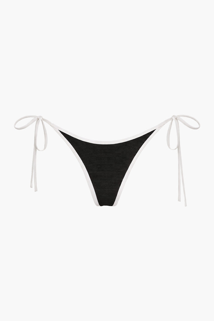 A timeless tie-side bikini bottom finished with a white contrast trim.