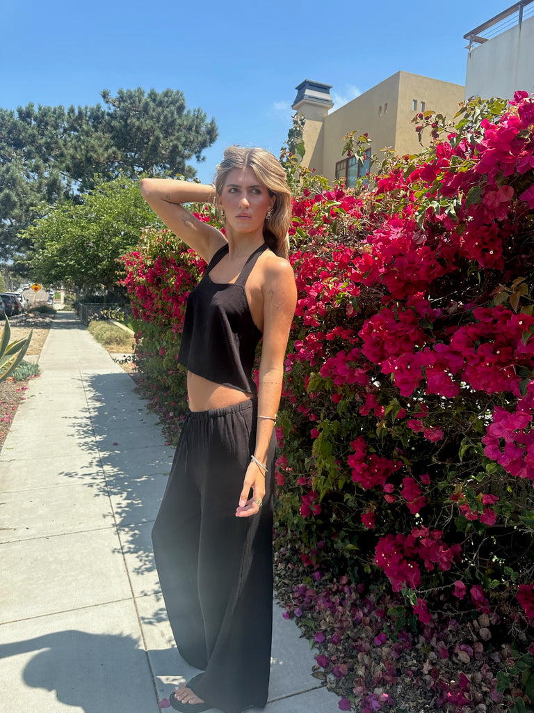 The Marlow Pants are effortless, subtly sexy and coastline cool. These pants with drawstring waist and side pockets are perfect for travel, nights out, or layering over swim.